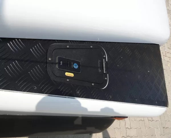 On the one side of your Defender is a plastic air intake on top of the front fender – the other side is just a dummy. This product simply takes the place of the plastic cover (use the same screws) and then allows access to a big space below. This space is often used to mount a compressor. It is also lockable suitable to prevent a casual intruder.